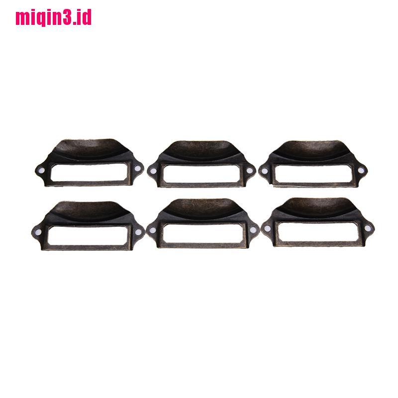 6x Antique Brass Black Vintage Metal Label Pull Frame Handle File Name Card Holder For Furniture Cabinet Drawer Box Case Bin