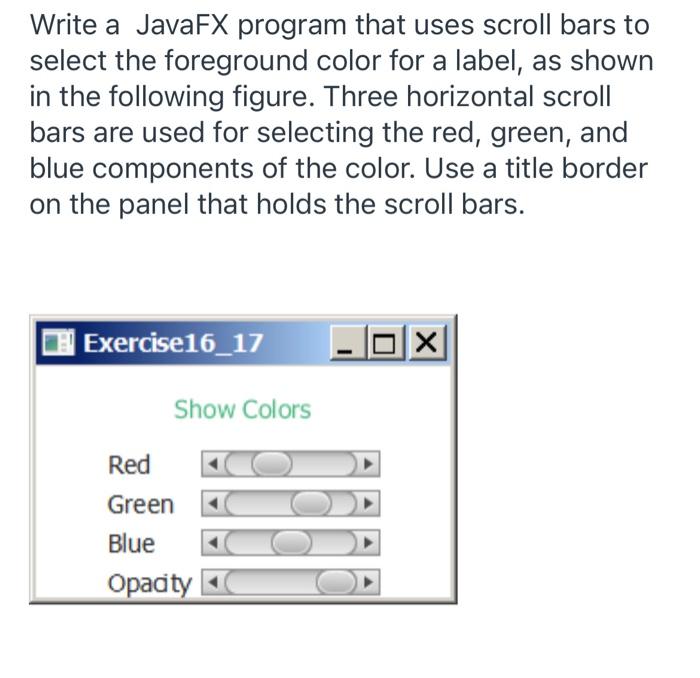 Label color javafx. Using JavaFX UI Controls: Label | JavaFX 2 Tutorials and ... - Oracle Creating a Label. The JavaFX API provides three constructors of the Label class for creating labels in your application, as shown in Example 2-1. ... The setTextFill method specifies the color to paint the text element of the label. Study Example 2-2. It creates a text label, adds an icon to it, and specifies a fill color for the text. ... Using JavaFX UI Controls: Combo Box - Oracle The ComboBox class provides handy properties and methods to use with combo boxes.. You can use the setValue method to specify the item selected in the combo box. When you call the setValue method on the ComboBox object, the selected item of the selectionModel property changes to this value even if the value is not in the combo box items list. If the items list then … JavaFX | Circle with examples - GeeksforGeeks Oct 25, 2019 · Output: Java program to create a circle with specified radius and coordinates of center and also specified fill: This program creates a Circle indicated by the name circle.The coordinates for the center and the radius of the circle is set using setCenterX(), setCenterY(), and setRadius function. .The function set Fill() is used to set the fill of the circle The Circle will be … Join LiveJournal Password requirements: 6 to 30 characters long; ASCII characters only (characters found on a standard US keyboard); must contain at least 4 different symbols;