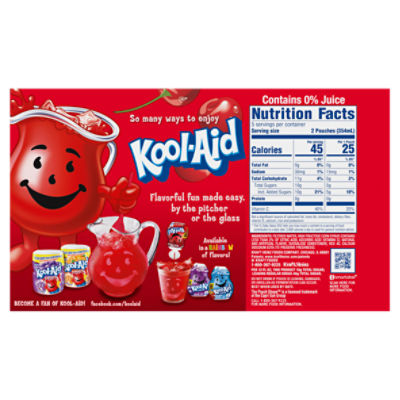 Kool-Aid Ghoul-Aid Jammers Scary Berry Artificially ... - Instacart Kool-Aid Ghoul-Aid Scary Berry Jammers are gushing with juicy artificial berry flavor. Our delicious kids drink contains 75% less sugar than leading regular sodas (per 12 fl oz, this product 10g total sugar, leading regular sodas 40g total sugar), making it a great artificially fruit flavored drink for kids.