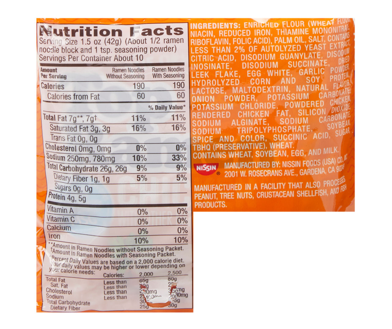 Ramen nutrition facts without seasoning