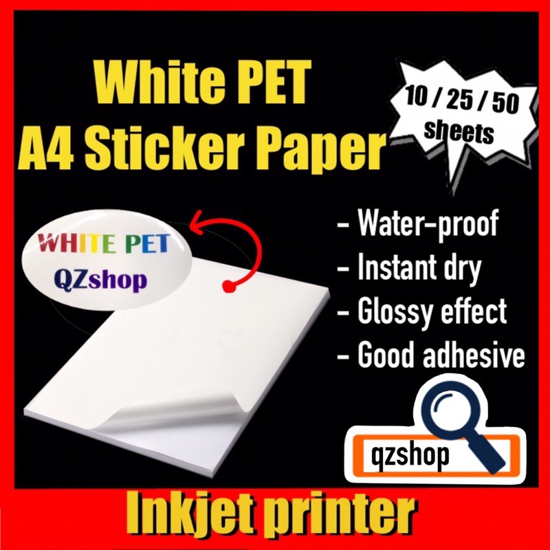 50 Sheets A4 Vinyl Sticker Paper for Inkjet Printer Glossy White Self Adhesive Stickers Label Waterproof Decal Paper Sheet
